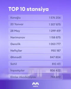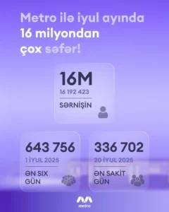 Im Juli 2025 beförderte die Bakuer Metro AG 16 Millionen Fahrgäste.